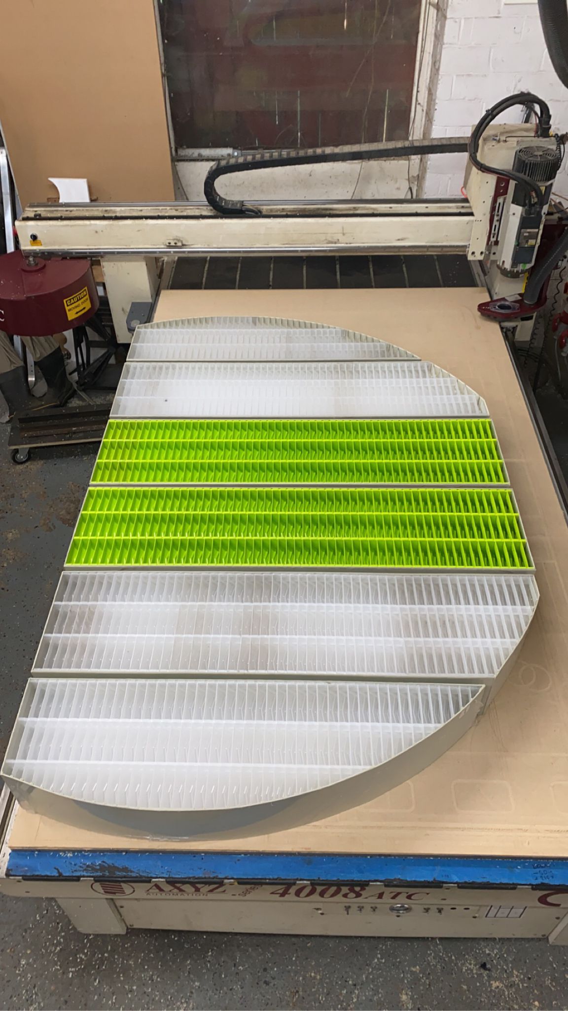 We fabricate chemical resistant demister units for fitting inside large scrubbing systems here in a workshop in Kent Amongst other Air Scrubber systems.